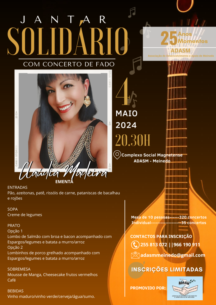 Em agenda, no próximo dia 4 de maio, irão realizar um Jantar Solidário, com espetáculo de Fado, onde contará com a presença da fadista Cláudia Madeira.