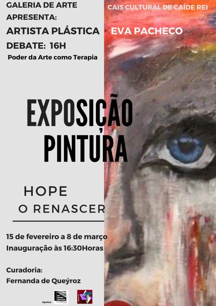 No passado dia 15 de fevereiro, foi inaugurada no Cais Cultural de Caíde de Rei, a exposição da Artista Plástica Eva Pacheco, com o alter ego HOPE. O tema da exposição de pintura é “O Renascer”, e mostra as obras realizadas pela artista numa fase de descoberta e de reencontro consigo mesmo após uma situação de burnout.