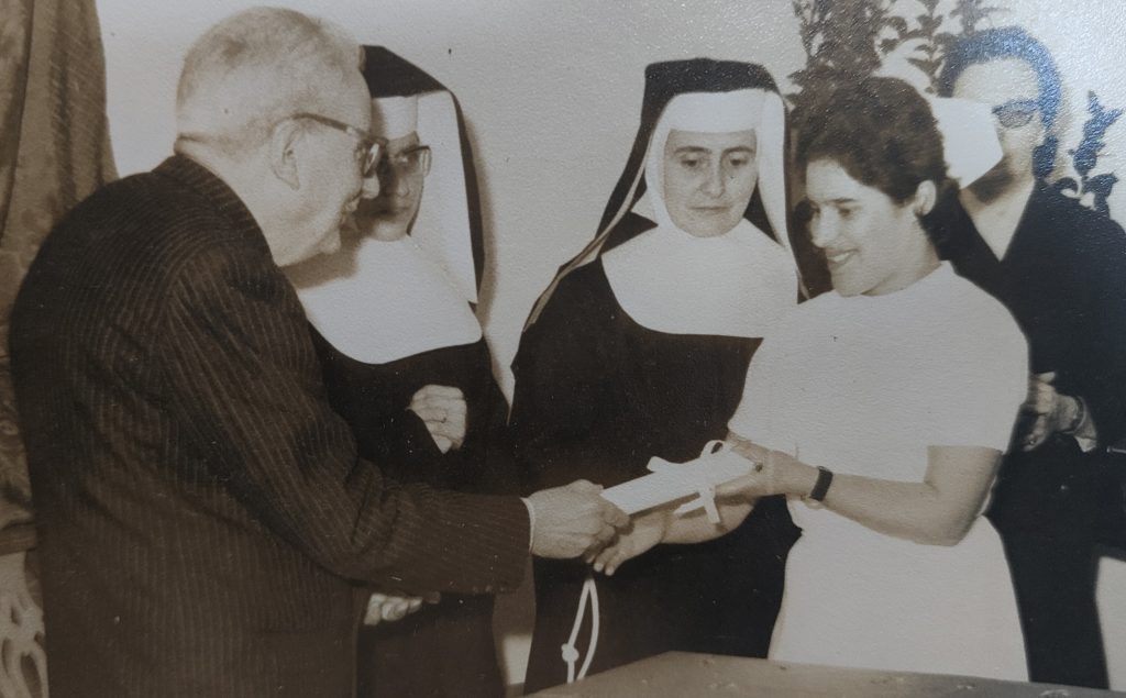 Maria da Conceição recebe o diploma de Enfermagem.