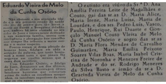Eduardo Vieira Melo Cunha Osório, nasceu a 16 de março de 1876 e faleceu a 14 de fevereiro de 1951. Filho de Carlos Augusto Vieira de Melo da Cunha Osório e Menezes e de Maria Rita de Macedo da Cunha Coutinho Pinto. Senhor da Casa de Juste (S. Fins do Torno, Lousada); Administrador do Concelho de Lousada e Vereador da Câmara de Lousada no penúltimo executivo monárquico. E foi um dos maiores impulsionadores da implantação do republicanismo em Lousada.
